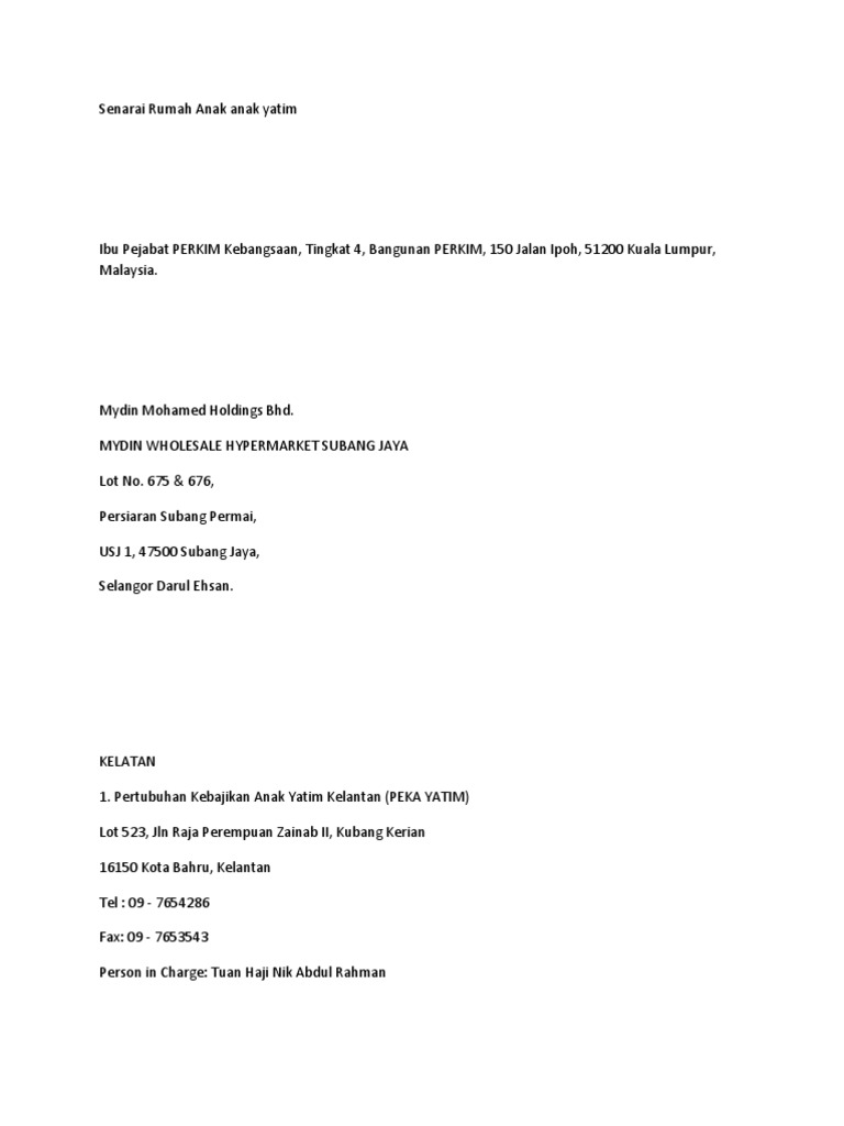 Senarai Rumah Anak Anak Yatim Pdf